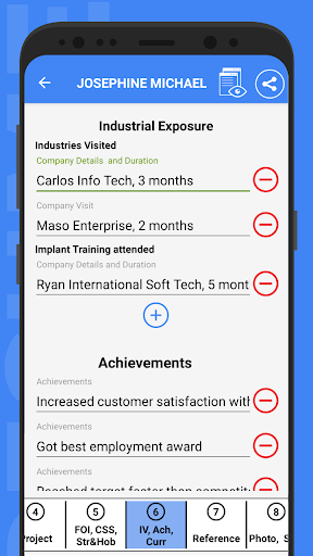 আপনার পাঠ্যক্রমটি পেশাদার হওয়া উচিত এবং এটি আকর্ষণীয় সারসংকলন ফর্ম্যাট থাকা উচিত। এই ব্যবহারকারী-বন্ধুত্বপূর্ণ সারসংকলন অ্যাপ্লিকেশন আপনাকে আপনার কাজের কর্মজীবনের সময়, আপনার ব্যক্তিগত শখ এবং স্বার্থ, আপনার একাডেমিক শংসাপত্র এবং পেশাদারী অর্জনের সময় কাজের অভিজ্ঞতা, অর্জনের মতো সমস্ত বিবরণ পূরণ করতে সহায়তা করে।