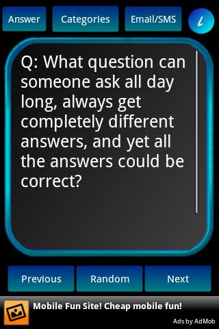 -7 different categories: Logic, Math, Classic, Ancient, Easy, Hard, Puzzles