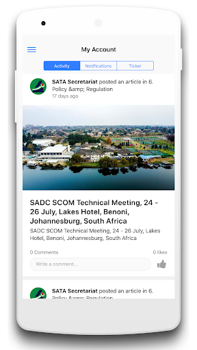 এসএটিএ কানেক্ট হ'ল ডিজিটাল শেয়ারিং প্ল্যাটফর্ম যা একাডেমিয়া, নিয়ন্ত্রক সংস্থা, দক্ষিণ আফ্রিকার টেলিকম অপারেটর এবং জনসাধারণের সদস্যদের মধ্যে যোগাযোগ এবং একটি ভাগ করে নেওয়ার সংস্কৃতি উত্সাহিত করার জন্য ডিজাইন করা হয়েছে।একটি সংস্থা।> প্রত্যেককে সাতার ভিতরে এবং বাইরে রাখুন - সংবাদ, প্রেস রিলিজ এবং আনুষ্ঠানিক তথ্য ভাগ করে নেওয়ার জন্য দুর্দান্ত