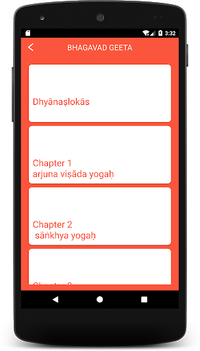 It displays each verse of Bhagavad Geeta accompanied by the audio that is repeated couple of times so that the listener can learn how to chant them properly.