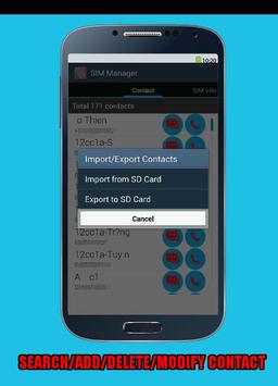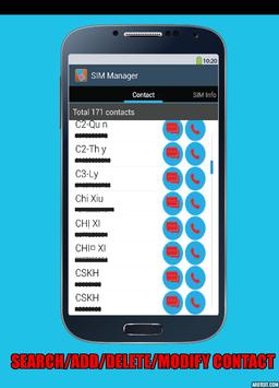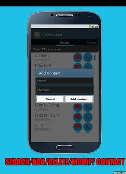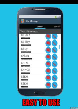 °°° It also help you to manage contacts in you SIM Card, you can view all your contacts stored on SIM Card, create a new contacts (store to SIM card), modify a contact or delete contact(s).