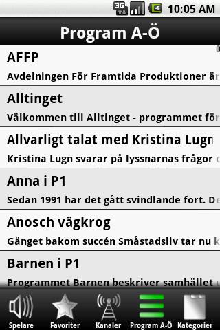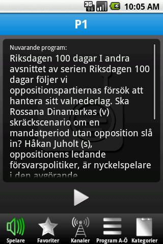 Listen to live and podcast broadcasts from SR swedish radio You can use it as a standalone application or if you prefer as a 4x1 or 2x1 widget Problem with WLAN? Please read the help page from app.0.9: Small upgrade so simplify the migration to the new offical application