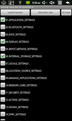 Setting launcher for android .6 is an application that can set the system setting item checked beforehand one by one continuously. This Android 1.6 version is improved answering the request.As for 1.6 version, a set item has decreased compared with Setting Launcher Android 2.2 version .