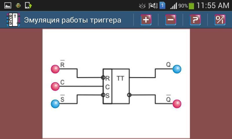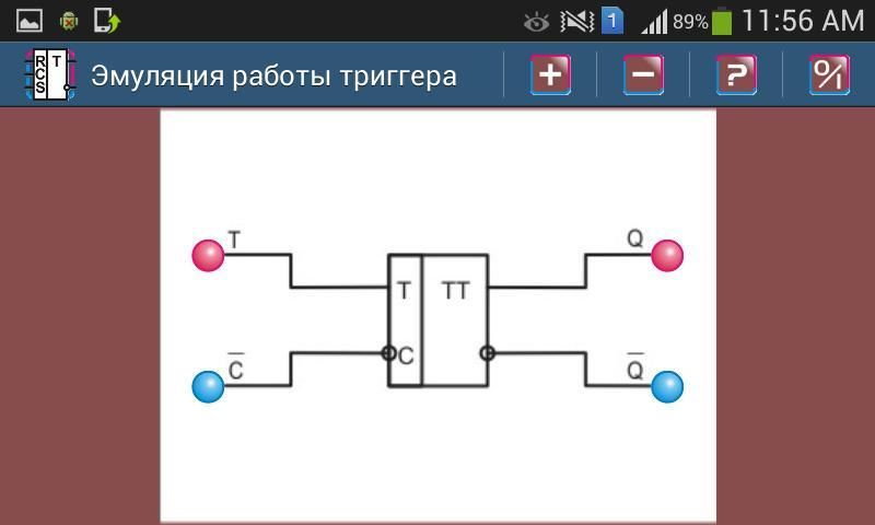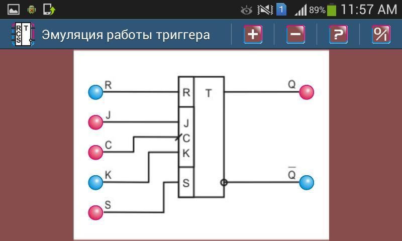 Выходные сигналы последовательностного устройства зависят не только от состояния, в котором устройство находится, но и от совокупности сигналов на его входах. В свою очередь, для изменения любого входного сигнала достаточно прикоснуться к экрану.