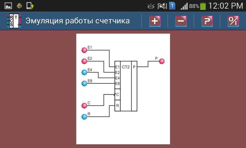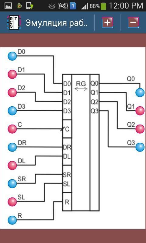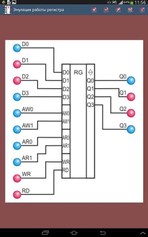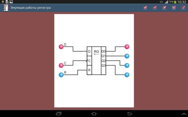 Основу приложения составляет программная модель – эмулятор. Эмуляция позволяет наглядно продемонстрировать алгоритм функционирования выбранного устройства с помощью интерактивных элементов интерфейса, к которым относятся индикаторы входных и выходных сигналов.