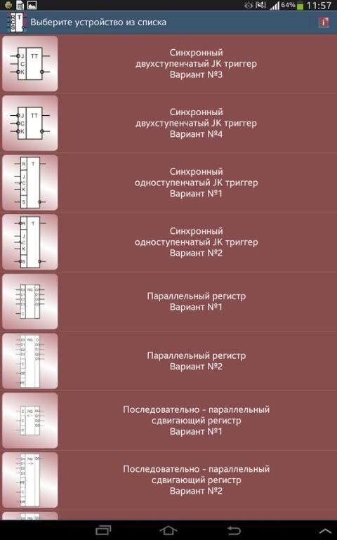 Приложение является логическим продолжением моих предыдущих разработок: «Комбинационные устройства» и «Конструктор схем СДНФ».