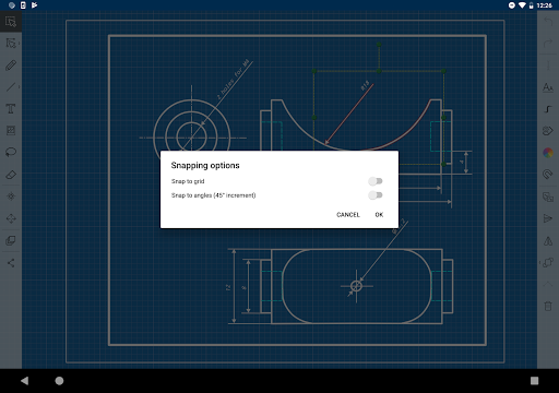 - Snapping to grid and angles (helps to draw perfect circles and squares)