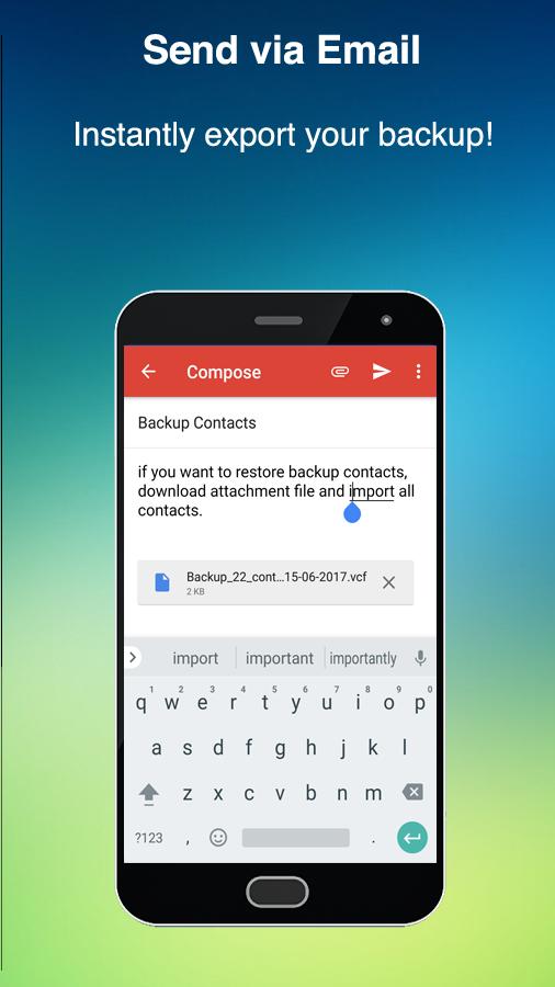 ► Easy restore. No need to any app to restore backup file. Just tap on the *.vcf backup file in the Android or iPhone mail client.