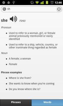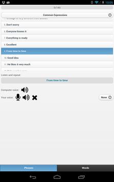 Day to day English phrases are categorized. Each phrase has a standard voice you can listen to and a