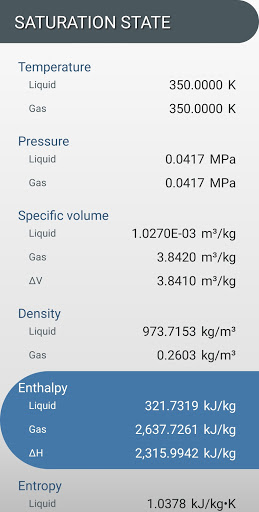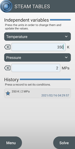 Steam Tables is a professional app that calculates water's thermodynamic properties based on IAPWS IF-97 formulation.