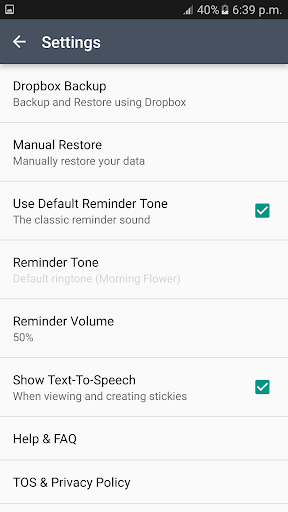 ❖ Backup and Restore feature using Dropbox Account to create a backup of stickies and restore later to prevent data loss.