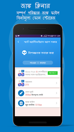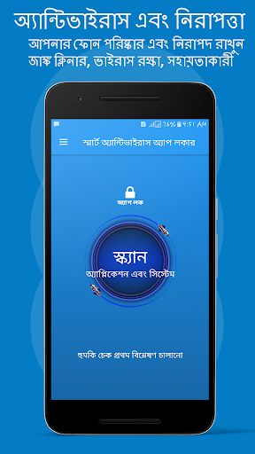 সুপার ফাস্ট অ্যান্টিভাইরাস অ্যাপ্লিকেশনটি ডাউনলোড করুন যা স্বতঃস্ফূর্তভাবে কেবলমাত্র এক ট্যাপে আপনার মোবাইল সুরক্ষার জন্য ডিজাইন করা হয়েছে।