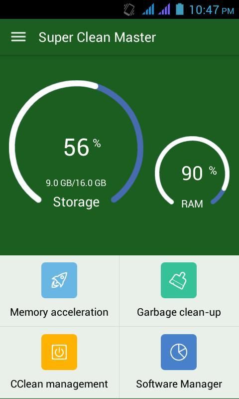 Super Clean Master is a small, fast, and totally free Android device cleaner and booster featuring a junk cleaner, memory booster, app manager.