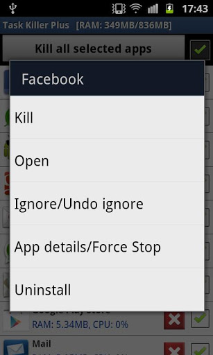 Top New Free apps in Tools in Google PlayThanks for supportingTask Killer Plus is the best task killer and task manager in Android. We utilized advanced technology so as to kill unused apps safely. You can also regard it as a battery saver as it can reduce CPU and memory usage. It also comes with an uninstaller to allow you to uninstall apps. Unlike other app killers, we keep the functionalities of this app minimal in order to make sure it doesn39;t cause any unexpected behaviors to your devices. It doesn39;t have those rubbish functions like autokill or background services in our opinion, these functions are just another way to drain your battery So this killer is fast, handy and extremely easy to use Pro version will be coming in the future. If you like this app please rate us 5 stars to support us : Basic functions: Press quot;Stopquot; button to kill a task super easy right? Check the apps you want to kill and press quot;Kill all selected appsquot; to close them Long press a task to bring up App Menu You can add an app to ignore list so that they will not be killed by Task Killer Plus Ignored apps will be greyed and displayed at the bottom Apps in Orange are Services which may not be killed If you want to properly kill a service, bring up App Menu and choose quot;App detailsForce Stopquot;. You can stop it there Memory meter at the title bar which shows your device total memory and available memory Optimize for Android 2.2.x Froyo, 2.3.x Gingerbread, 3.x Honeycomb, 4.x Ice Cream Sandwich ICS, Jelly Bean JB 4.1 A detailed tutorial is included in the app so that you can check the functionaries anytime Share this app function allows you to share this app to your friends via Facebook, SMS, MSN, Gmail, Email, Whatsapp, Twitter or other social networking applications CAUTION Killing a Service may cause the system unstable. We recommend you to add all Services to ignore listIf you want to tell your friends to install this app, simply ask them to search the below keywords in Google Play store Android Market:Task killer, taskkiller, appkiller, Task killer plus FREE, atk, atm, quick killerChange log: Fixed app name too long issue Services are now shown in orange again. Added remove ad function. Advertisement will be removed permanently after purchasing. Please rate us 5 stars if you like and send us comment :How to Optimize Battery Life amp; Speed?Consider your device a mini computer, in order for it to do anything it39;s reliant on its ability to process new information write that information to memory, and then output that information to your screen. Like all computers, its ability to perform well is dependent on all of the componentsfactors working together as one unified system; starting from its corefoundation hardware ranging all the way to the user apps. Each layer plays an important role regarding how your device will perform, however the farther and farther you move away from the Hardware Level level 1 regarding tweaksmodssettings, the potential benefits will decline in their relative significance. Therefore the best way for me to explain what it will take to improve the overall performance of your device, will be methodically and sequentially break down the specifics regarding each of these levels:1 Hardware amp; External Factors2 Kernel3 Operating System4 BaseFramework ROM