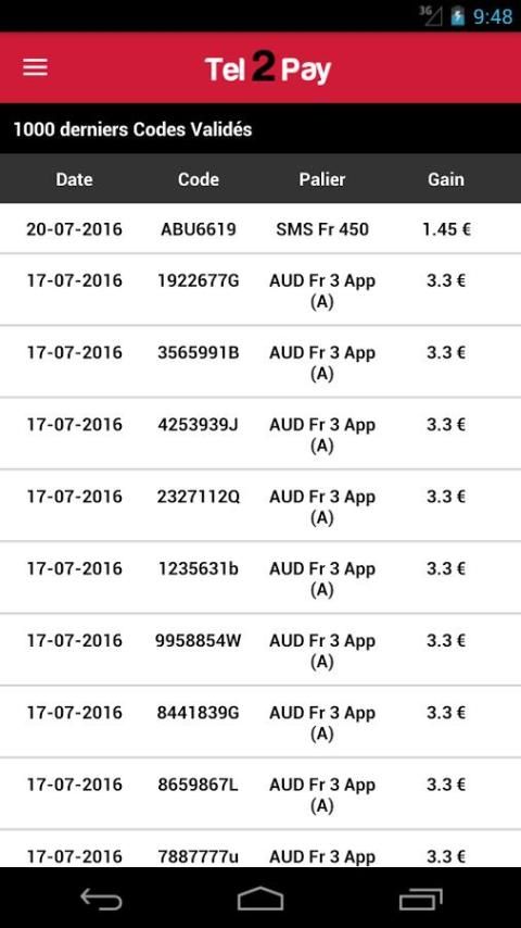 + Check the list of last 1000 codes validated on your websites