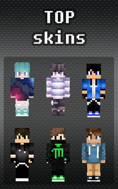 Top skins for boys only in our application. Also try black skins for minecraft, fiery skins for guys and whatnot.