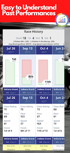 · ট্র্যাকউইজ রেটিং - ট্র্যাকউইজের মালিকানাধীন অ্যালগরিদম আপনাকে ঘোড়া এবং এর সংযোগগুলি নিয়ে কী চলছে তা দ্রুত সনাক্ত করতে সহায়তা করে