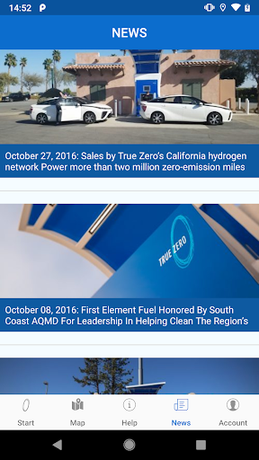 The True Zero app is a fast and convenient way to find hydrogen charging station locations. The app also provides useful information like: Station Status, Operating Hours, How-To videos and interesting local and alternative fuel articles.