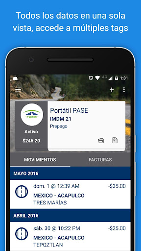 আপনার ফোন থেকে একক অ্যাকাউন্টে এক বা একাধিক ট্যাগ রেকর্ড করুন এবং আপনার সমস্ত ট্যাগ থেকে অনলাইন তথ্য পান যেমন: বর্তমান ভারসাম্য এবং রিচার্জগুলি (যদি আপনি প্রিপেইডে থাকেন) এবং আপনার সমস্ত ক্রসের রেকর্ড হয় হাইওয়েগুলিতে আরবান, পার্কিং লট এবং রাস্তাগুলি