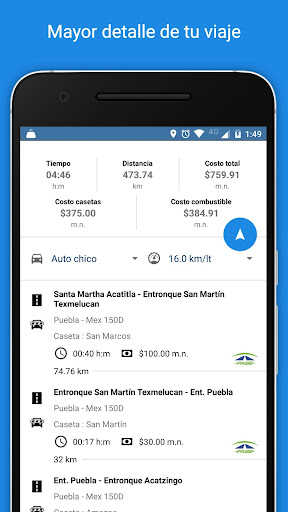 টোলের ব্যয়, জ্বালানির আনুমানিক ব্যয়, রুটের আনুমানিক সময় এবং আপনার ভ্রমণের আনুমানিক দূরত্বের পাশাপাশি সিস্টেমটি কী টেলিপিয়েটিভ বুথ রয়েছে