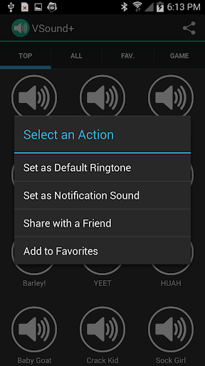 আপনি যদি কোনও শব্দ পছন্দ করেন তবে আপনি আপনার ফেভারিটে যোগ করতে পারেন, এটি আপনার ডিফল্ট রিংটোন হিসাবে সেট করুন, এটি বিজ্ঞপ্তি শব্দ হিসাবে সেট করুন অথবা এটি একটি বন্ধুর সাথে ভাগ করুন।