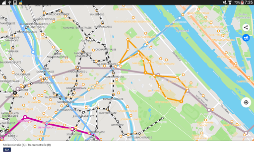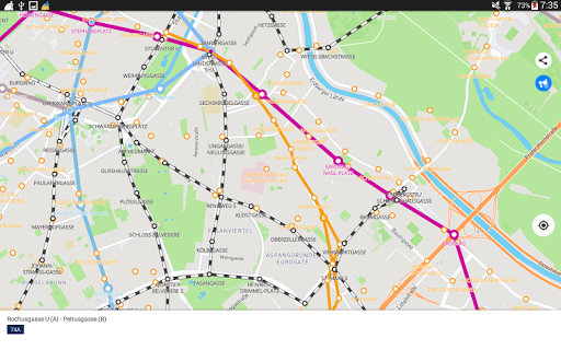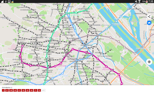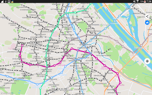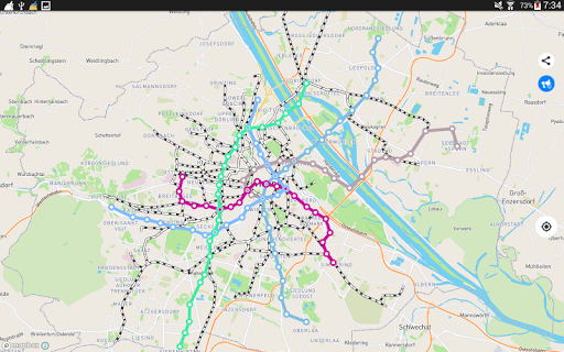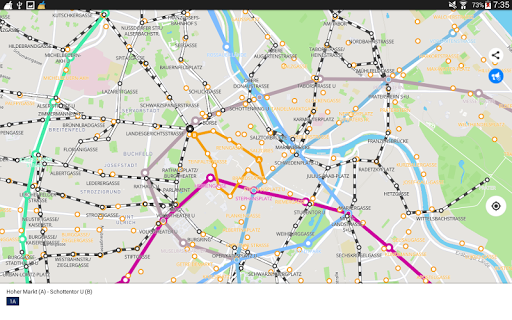1) আপনার ডিভাইসের পর্দায় আপনি পুরো ভিয়েনা এর পাবলিক ট্রান্সপোর্ট স্কিমটি দেখতে পাবেন, এবং আরো স্কেলটি আরো বিস্তারিত বিবরণ দেওয়া হয়।