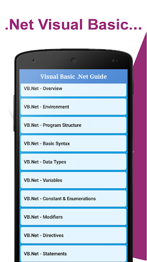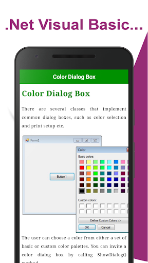 Visual Basic NET Tutorial - VB .NET Examples is an android App Helps you to Learn Visual Basic Programming language for both Windows Forms applications .