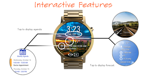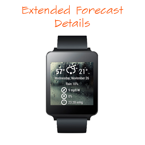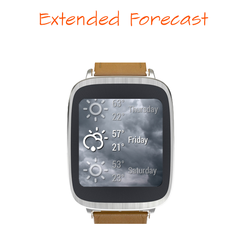 A watch face app for your android wear smart watch that beautifully and simply displays current weather conditions along with the time and date.
