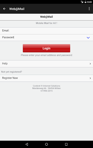 This app is for people using a unique email-address (Domain like yourname.com NOT for Mass-Mail like Gmail, Hotmail, Yahoo etc) and searching for a Webmail-interface (Email to Internet)