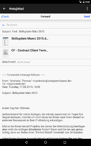 Web@Mail is a web-service with increased security (integrated antivirus and spam-protection) for getting your mail device independently. This is not just another copy of K-9 Mail, but an independent managed webservice - it's a sever-side
