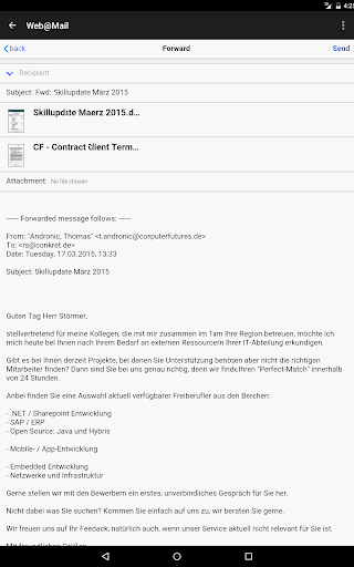 based on HTML5 (which you can use with a browser on any device - see: https://conkret.mobi ). It offers security and a direct access to any mailbox without any installation effort and without data-consuming synchronization of the mailbox by working directly with your mailserver - so you don't need to change MX-records for your domain.