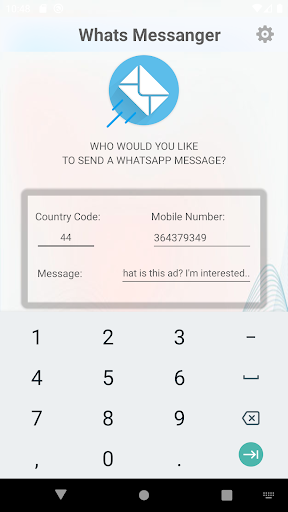 WhatsMessenger is an essential tool in a current device. It is a simple but very powerful application whose main function is to send messages to WhatsApp without registering the contact on your phone, directly writing the number to which you want to send the message.