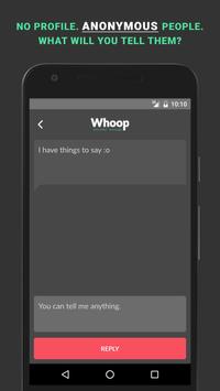 Whoop is a social messaging app where you can share your thoughts freely with anonymous people.