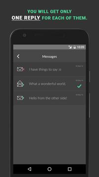 After you open the app, you will see a text box where you can type your thoughts on, then you send it. Voila! :) Your message will be sent to a random Whoop user. When that person reads your message, you will get a notification. When that person responds your message, you will get an another notification. Now you can view your message :)