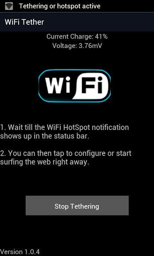 Get Easy Wifi Tether Now Start tethering todayNO ROOT REQUIREDREMOVED PUSH NOTIFICATIONSREAD through the description to see if your phone is on the list of devices that DO NOT WORK with this app Donate version is available AD free https:play.google.comstoreappsdetails?idcom.lite.up.easy.tether.donateMIGHT NOT be compatible with HTC myTouch 3G Slide, DROID RAZR, Droid 2 Droid X, Bravo, HTC Thunderbolt, EVO 4G, Photon, Rezound, Inspire, Samsung Epic, Intercept, Prevail, lg Thrill, Esteem, LGE Bryce, Casio Commando.Easy Wifi Tether No Root is an application that allows you to quickly start and enable your portable WiFi HotSpot.Once you activate the app you will be able to surf the web, connect to PS3, or XBOX Live account. Share your phones internet connection. Search the web on your tablet or any other wifi device. Once app is started wait a few seconds for it to activate the hotspot. Once you are done just click on the stop button. Easiest wifi tether app that requires no root.This is a shortcut tool to save you lots of time.kw: tether,teter,easytether,barnacle,opengarden,easy tetherVisit our blog for more apps http:potentemobile.blogspot.com