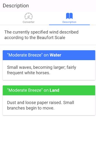 Specify a value of wind speed in any unit to have it converted to the other units. Choose Description tag to get a description of the specified wind speed on water and land.