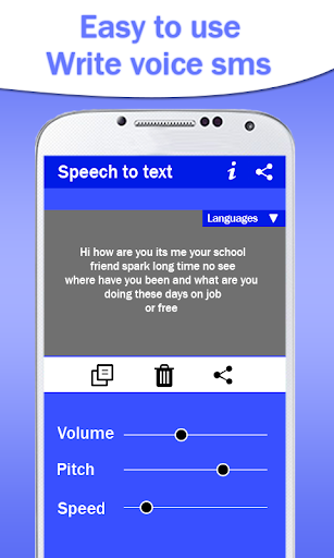 Write Message by voice: Make text by voice solve the simple problem of sending, receiving and reply to text messages with only your voice. Voice command makes Write Message by voice: Make text by voice one of easiest and powerful hands-free texting app available. Write Message by voice: Make text by voice is an app that incorporates the benefit of the usage of voice to text by the voice that enables user writes text messages by voice. A user should talk into the microphone in order to convert the speech to text just to send voice messages and receive text messages via supplying voice instruction. The user should talk into the microphones in order to convert the speech into text just to send SMS by voice to anyone via this voice SMS writer users do not have the hand to type their text messages it can be the voice to text and send messages. Write Message by voice: Make text by voice convert voice into text and it can be without rendered to text in numerous languages for the textual content messages. The update at the same main feature of sending SMS by voice through text is to create a secure environment for the user in which they can handle multitasking such as driving an important update at the time same time.