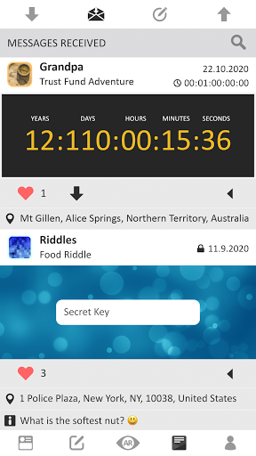 আপনি একটি নির্দিষ্ট সময়ে ভবিষ্যতে বা স্ব-ধ্বংসের জন্য আপনার সামগ্রীটির জন্য উপস্থিত এবং অদৃশ্য টাইমারগুলি যোগ করতে পারেন; আপনি আপনার AR বার্তা দেখতে কে পেতে পারেন এবং কতজন লোক আবিষ্কার করতে এবং তাদের সংগ্রহ করতে পারেন এমন একটি সীমা নির্ধারণ করতে পারেন।