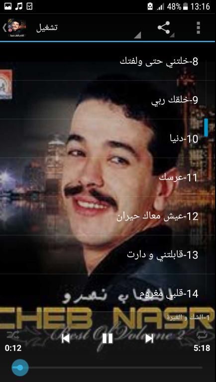 عبر تطبيقنا يمكنك الاستماع غلى اغاني cheb nasro مجانا و بدون نت.