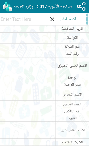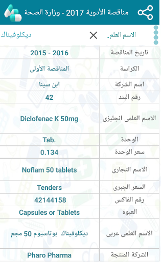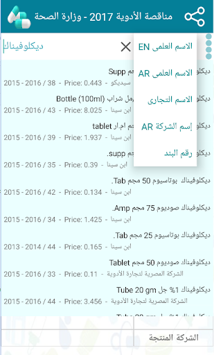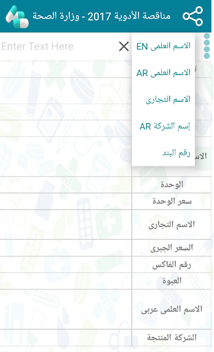 (কার্যকর আরবি) - সক্রিয় নিবন্ধ - ইউনিটি - ইউনিট মূল্য - প্যাকেজিং - প্রকাশিত সংস্থা