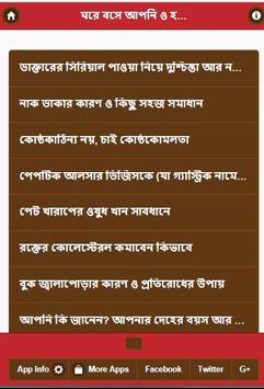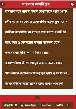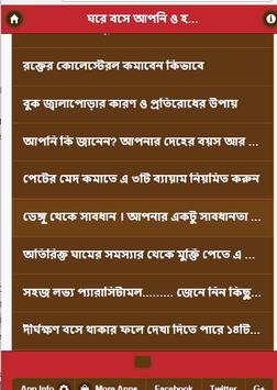 রোগ বা উপশম দেখা দিলে বা আক্রান্ত হলে কি করা দরকার বা কি করলে প্রাথমিক চিকিৎসা পাওয়া যাবে এমন তথ্য নিয়ে অ্যাপসটি তৈরি। এই অ্যাপসটিতে অনেকগুলো রোগের তথ্য দেওয়া আছে। আশাকরি সকলেই উপকৃত হবেন।