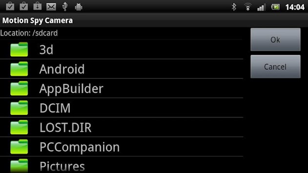 Purchase of full version allows you to store your pictures to SD CARD and send emails. With included folder manager you can easily specify a recording folder.