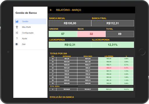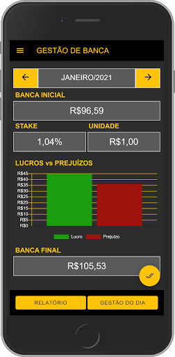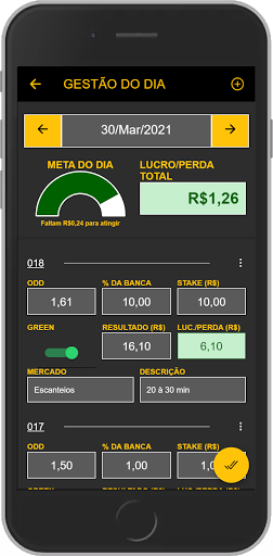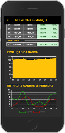 ক্রীড়া বিনিয়োগ বাজারে এন্ট্রি নিয়ন্ত্রণের জন্য অ্যাপ্লিকেশন ব্যাংকিং পরিচালনা।অ্যাপটিতে আপনি ব্যাংক, প্রতি মাসে এবং দিনের প্রবেশদ্বারগুলি নিবন্ধন করবেন।এন্ট্রিগুলির পরে, অ্যাপ্লিকেশনটি আপনার মুনাফা এবং ক্ষতির মাধ্যমে গ্রাফের মাধ্যমে শতাংশগুলি উপলব্ধ করবে।