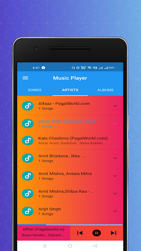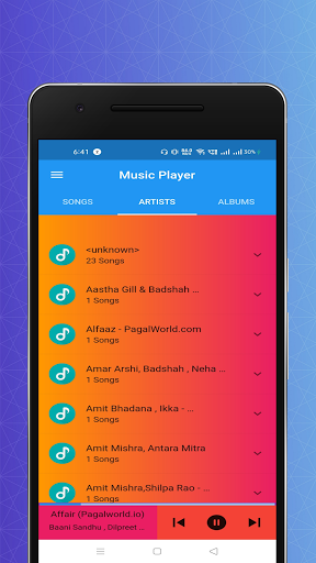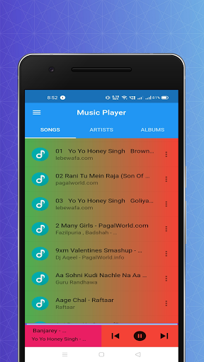 এই অ্যাপ্লিকেশনটি একটি বিনামূল্যে mp3 মিউজিক প্লেয়ার। সঙ্গীত প্লেয়ারের ব্যবহারকারী ইন্টারফেস খুব সহজ এবং ব্যবহার করা সহজ।আমাদের অ্যাপ্লিকেশন ব্যবহার করে আপনার স্থানীয় স্টোরেজ থেকে সমস্ত এমপি 3 গান এবং অডিও ফাইলগুলি খেলুন।এই মিউজিক প্লেয়ার কোন ধরনের বিজ্ঞাপন ধারণ করে না।