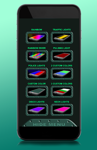 Light up your room and photos! "Rainbow display flashlight - Lights and effects" is an app which allows you to go creative when it comes to taking photos or videos and is great for lighting up your room. Customize your own light combinations or use our big variety of effects like: police lights, neon flashing lights, disco lights, traffic lights and more!
