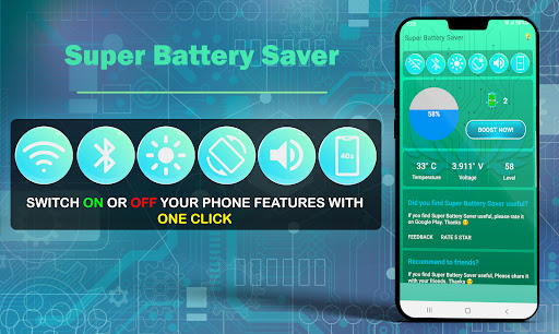 আপনার অ্যান্ড্রয়েড স্মার্টফোনটি খুব গরম হয়ে উঠছে বা ল্যাগিং করছে? এটি কারণ পটভূমিতে অনেকগুলি অ্যাপ্লিকেশন এবং পরিষেবাদি চলছে, আপনার ফোনটি দ্রুত তার ব্যাটারি নিষ্কাশন করতে পারে। সুপার ব্যাটারি সেভার সমস্ত অ্যাপ্লিকেশন এবং পরিষেবাদিগুলি বন্ধ করে দেয় এবং আপনার ফোনের ব্যাটারিটি সংরক্ষণ করে যাতে আপনি আপনার স্মার্টফোনের সবচেয়ে বেশি করতে পারেন।