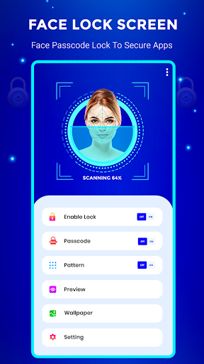 ফেস লক স্ক্রিন এবং ক্লক একটি অসাধারণ এবং পেশাদার লক স্ক্রিন অ্যাপ্লিকেশন অসাধারণ লক দিয়ে। ফেস লক স্ক্রিনটি আপনাকে বিভিন্ন ফেসের সাথে আপনার ফোন আনলক করতে দেয় :. ফেস লক স্ক্রীনটি আপনার মুখ ভুলে গেলে পিন কোডের সাথে আনলক করার জন্য বৈশিষ্ট্যটি রয়েছে। আপনি পিন কোড ব্যবহার করে মুখ সেট করতে পারেন।