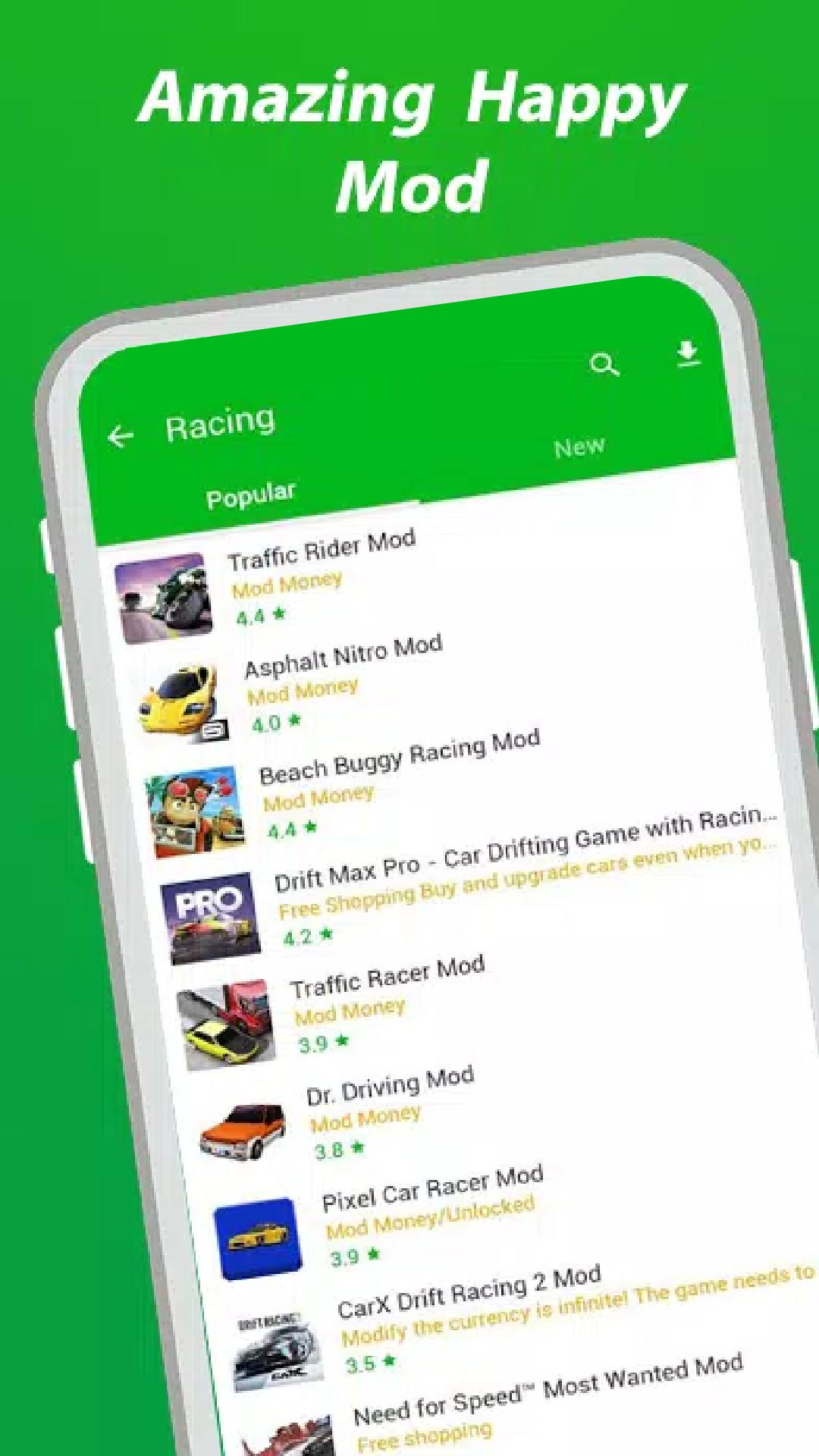 Happymod app is a mod download application. Here you'll see different apps organized by games or tools It contains many mods that are ready to use. You are enabled to install tons of modified APKs in your smartphone. With the help of happymod free app prevent ads in Android applications from appearing.