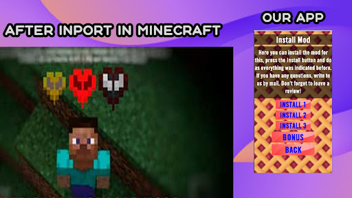 DISCLAIMER: This is an unofficial application. The name, trademark and assets are the property of the owner Mojang AB. The application helps to install and familiarize yourself with the mod for the Minecraft game, this is not a game, but an add-on with instructions! If you believe there are trademark infringements that do not fall within the "fair use" guidelines, please contact us by email.