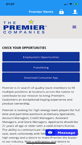 The Premier Connect App provides rent to own customers the ability of managing their Premier Rent-to-Own account. Franchisee can also track sales progress and consumers can register to link and manage their account via the app.